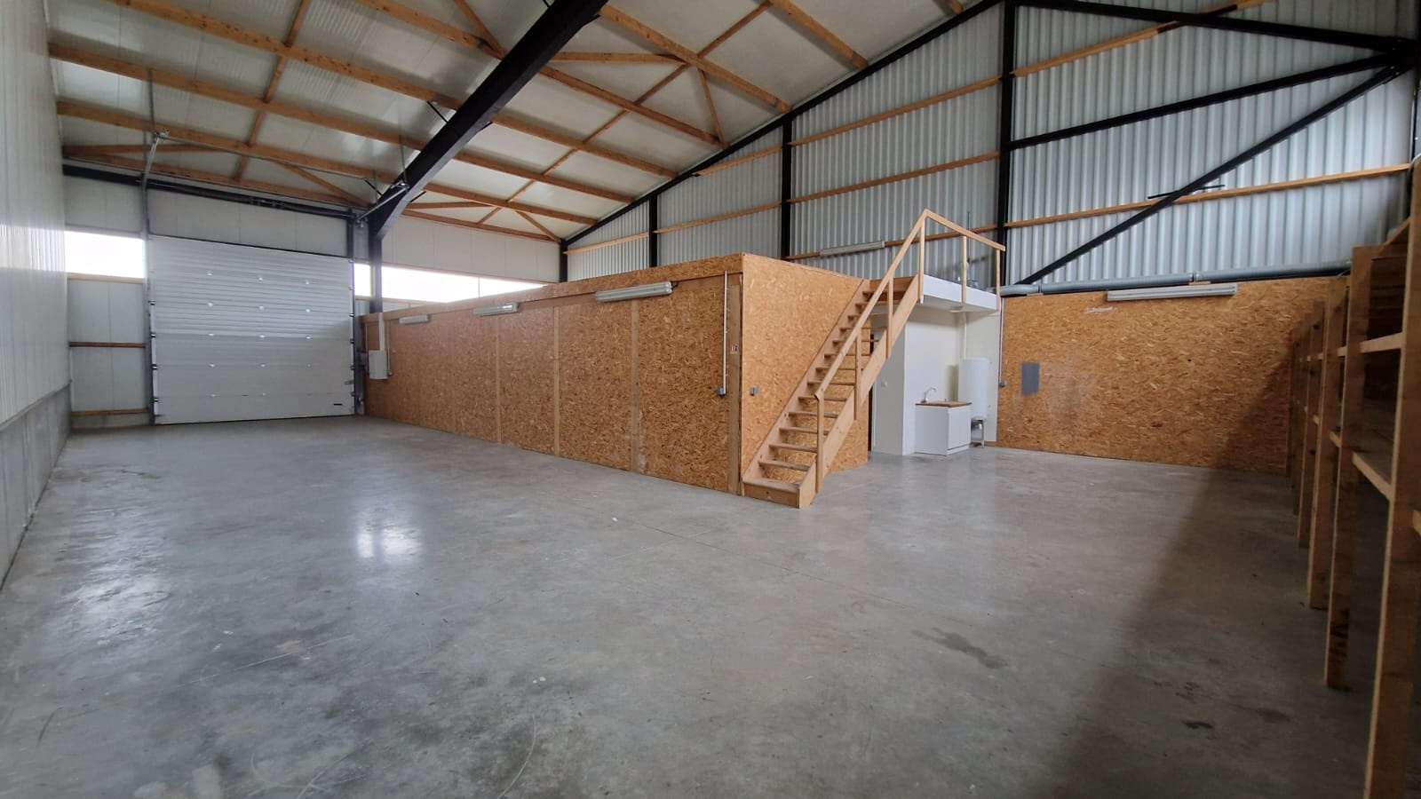 Plouigneau, à louer cellule de 163 m² de 2012 comprenant un espace bureau d'environ 18 m² et d'une mezzanine 81m². Couverture double peau, dallage finition quartz, aire de stationnement enrobé. Accès direct RN12.