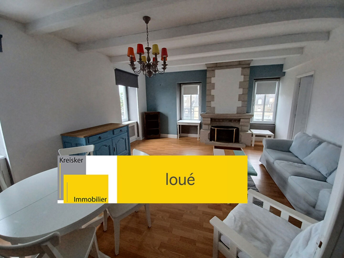 Carantec , centre ville, loue appartement de type T3 comprenant entrée, cuisine aménagée et équipée ouverte sur pièce de vie avec vue mer, 2 chambres, salle d'eau avec wc. Cave et place de stationnement .