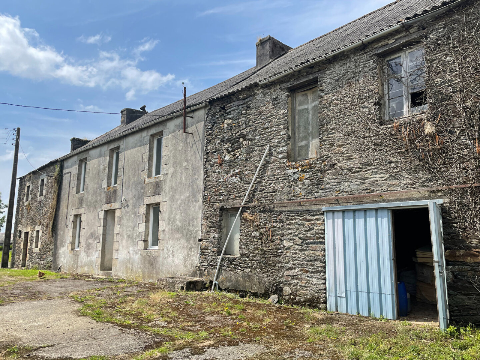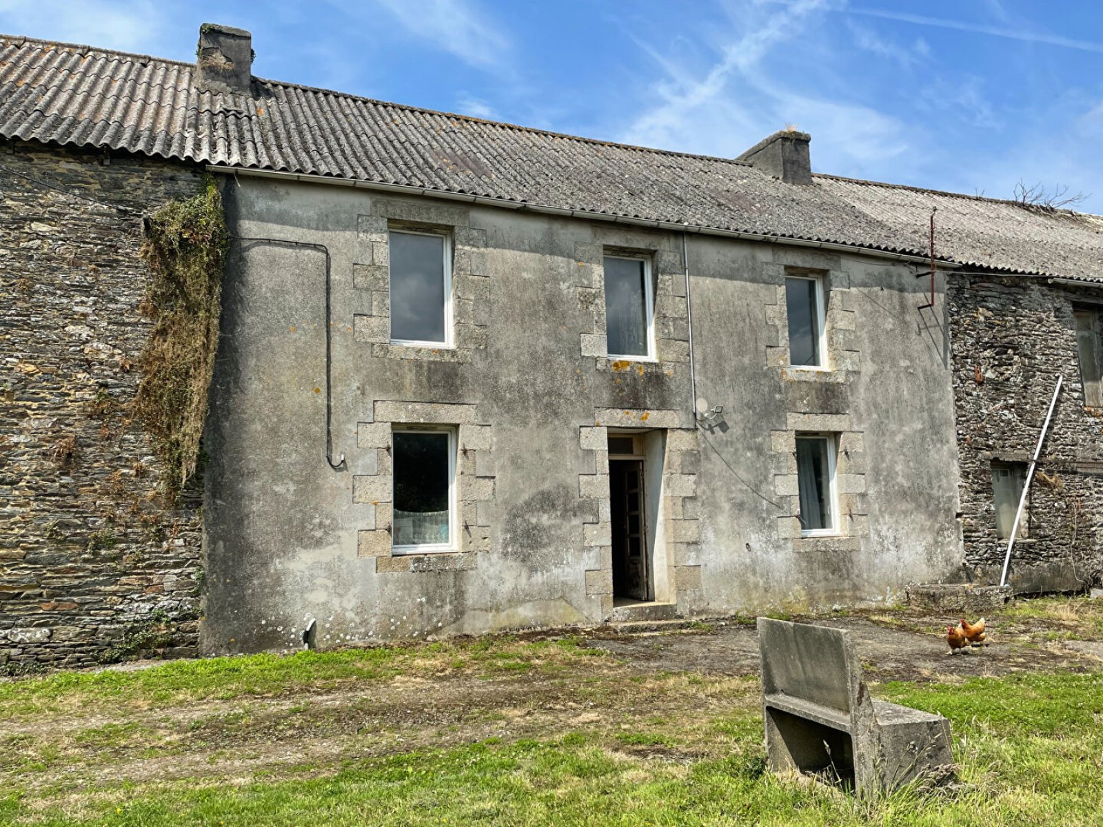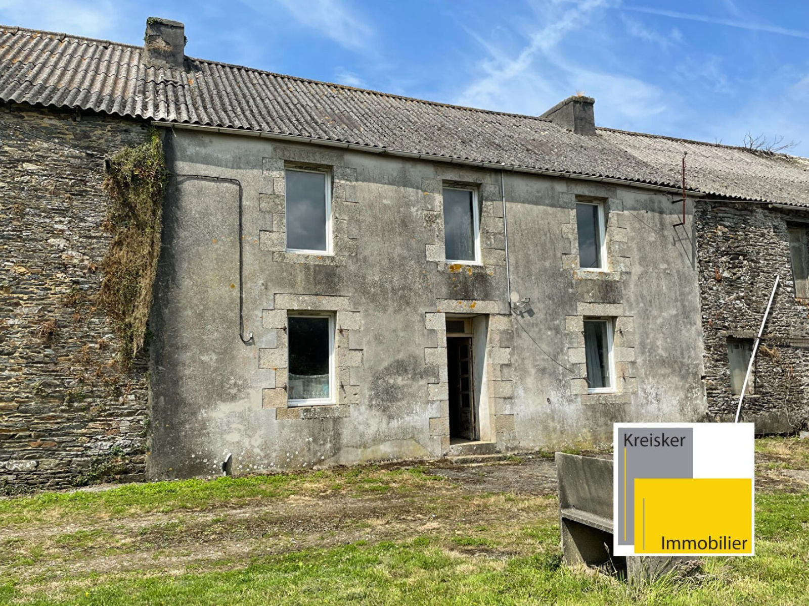 Lampaul-Guimiliau, au calme à la campagne, à vendre ancien corps de ferme comprenant une maison d'environ 128 m² composée au rez-de-chaussée d'une entrée, cuisine, arrière cuisine, séjour, salle d'eau avec WC. A l'étage 4 chambres. Dépendances et puits. Terrain d'environ 1630 m². Idéal pour les amoureux de la nature et de la rénovation. Du caractère et du potentiel.