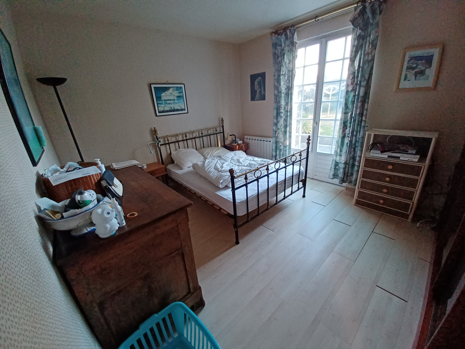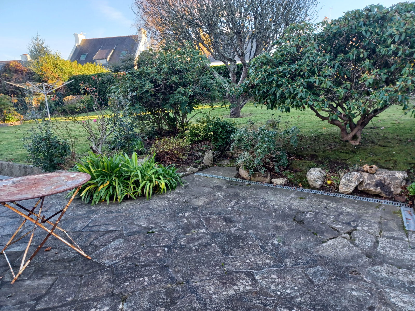 Finistère, Baie de Morlaix, Carantec vente maison centre ville de 1979 proche plages et commerces sur terrain d'environ 761 m² ; comprenant : entrée, cuisine équipée ouverte sur séjour et salon avec cheminée, le tout donnant sur la terrasse et le jardin exposé Sud/Sud-Ouest avec un ensoleillement maximal. Une grande chambre, salle d'eau, wc. A l'étage,dégagement, 3 chambres, salle d'eau, wc. Garage attenant.