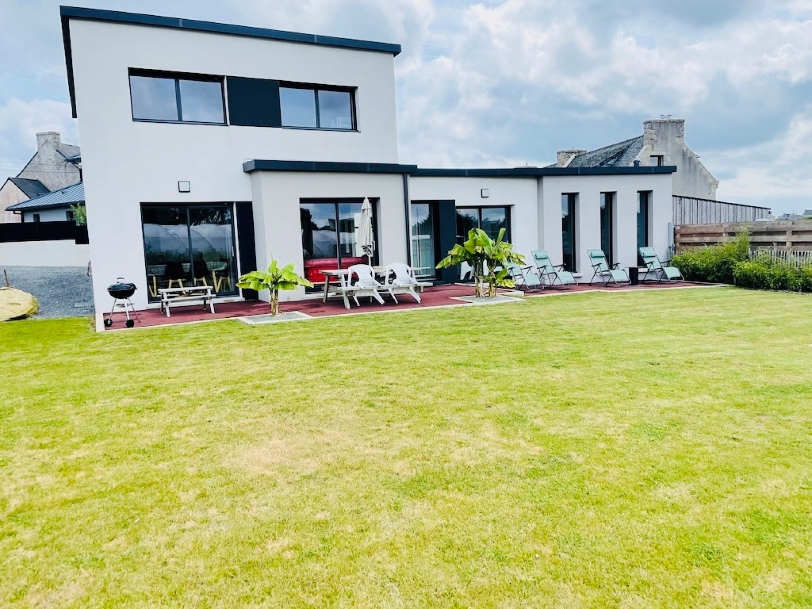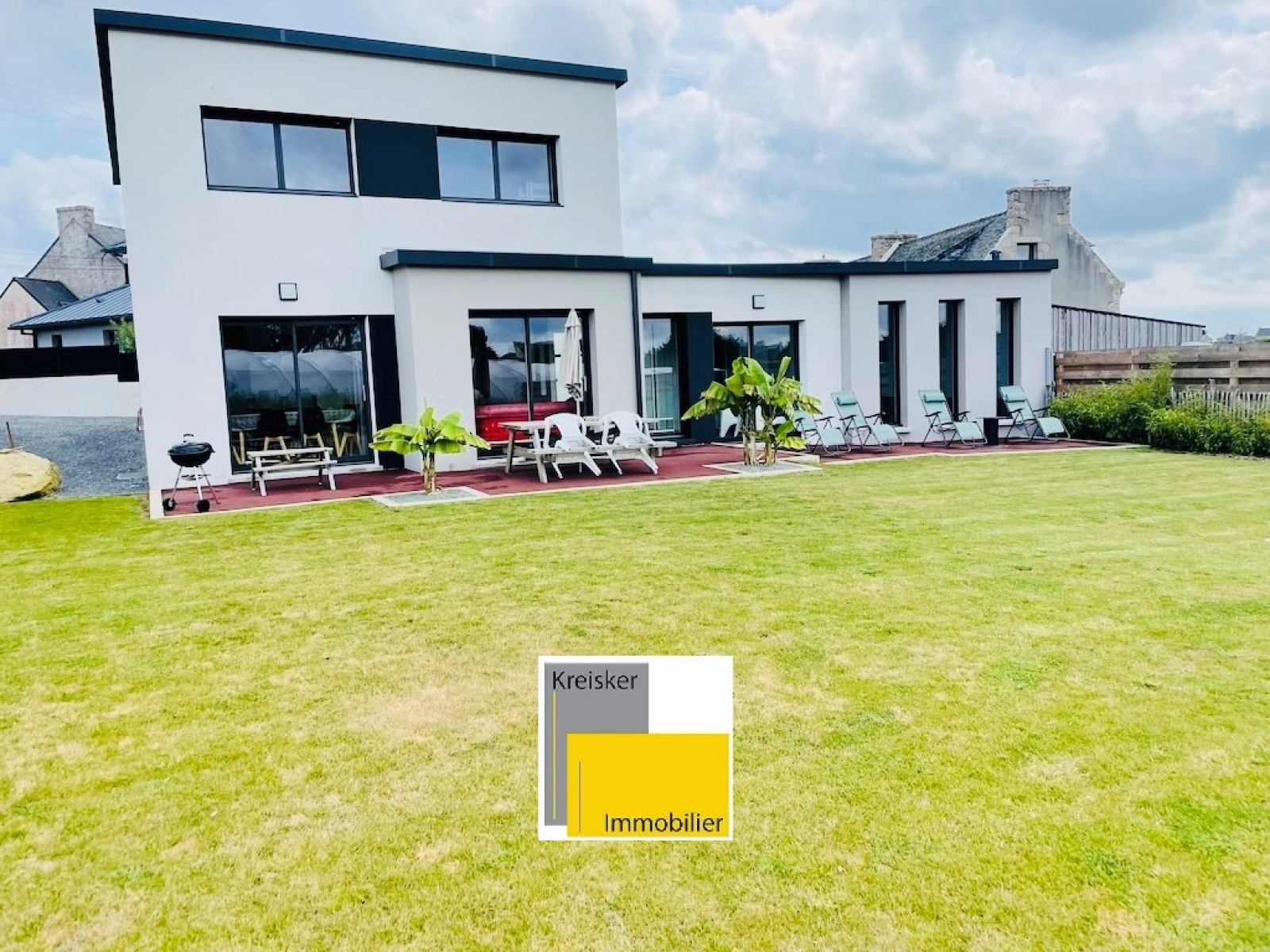 ROSCOFF. Maison de 2020 en parfait état, habitable de plain pieds avec piscine couverte et chauffée accessible par la pièce de vie et sécurisée, construite sur un terrain de 707 m². Composée au RDC d'une pièce de vie avec cuisine ouverte aménagée et équipée donnant sur une terrasse extérieure, une suite parentale avec rangements salle d'eau et WC, un 2ème WC pour visiteurs. A l'étage, 3 chambres et salle de bain et WC. Jardin. Parking.