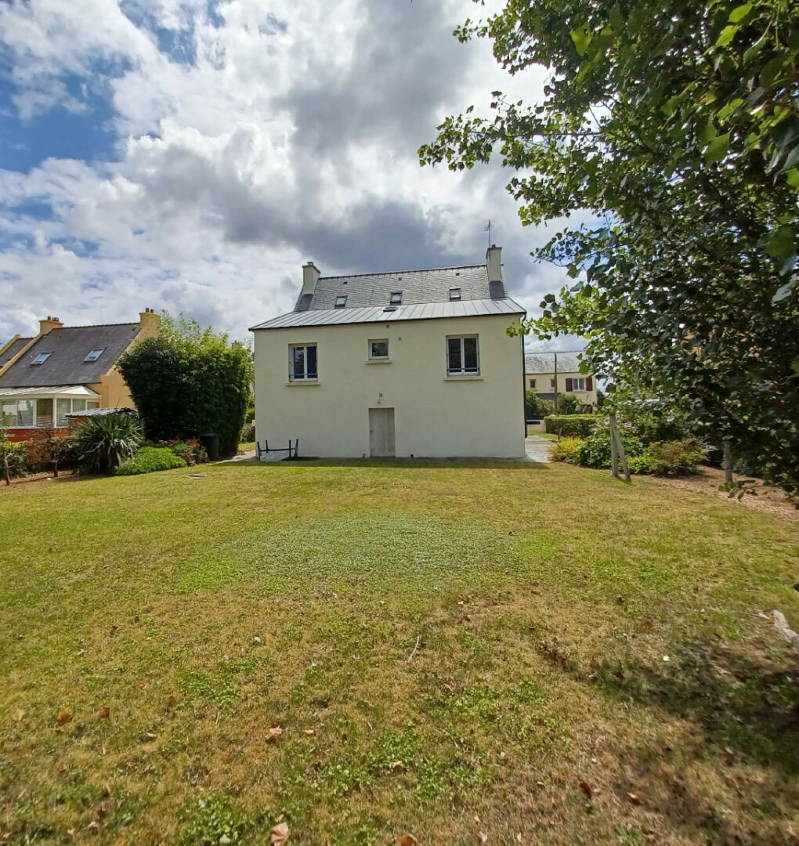 A vendre, en Bretagne, Finistère Nord, sur la commune de PLOURIN LES MORLAIX, à deux pas du bourg et des commodités, cette maison traditionnelle des années 60 a été entièrement rénovée. Elle dispose d'un sous-sol complet avec garage et chaufferie, à l'étage : grande pièce de vie avec salon séjour cuisine ouverte aménagée et équipée, deux chambres, salle d'eau, w-c. A l'étage : deux chambres, salle d'eau. Jardin. Le tout sur 1296m².